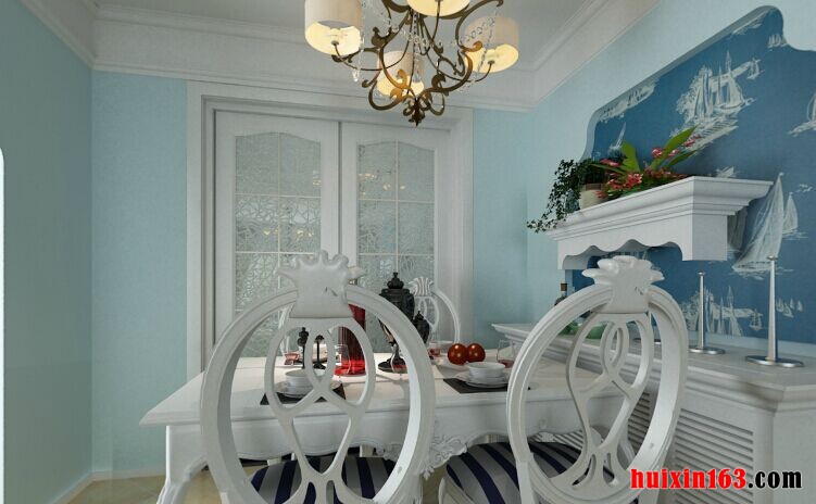 本套房屋装饰比较受女性房主喜爱,客厅中的沙发背景墙上做出了连续拱门的造型设计,并在拱形门内粘贴了白色的仿砖壁纸,整体装饰效果比较可以带给人们一种浪漫的甜蜜感,石膏板吊顶的设计比较简单,中间悬挂了一盏仿古款式的吊灯磨砂材质的灯罩可以让吊灯的灯光变得更加柔和,白色的布艺沙发搭配上蓝白相间格子图案的做垫与抱枕更可以带给人们一种舒适感,一款实木材质的茶几摆放在客厅中间,小巧的体型加上极致的做工,摆放在客厅中无疑成为了一大亮点,窗前的角落里摆放了一盆新鲜的了绿植,虽然放在角落里但在整体的装饰中却显得非常扎眼,鲜嫩的绿色在客厅装饰中形成了一道亮丽的风景线。