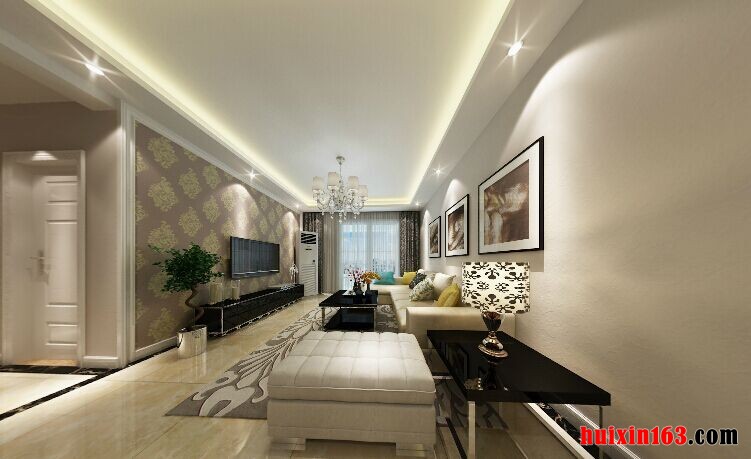 115平米的三居室,采用现代简约的装修风格,该案例装饰展现的是清新、亮丽的一面,在客厅的装饰布置当中,采用平顶式的石膏板吊顶,背景色彩以白色为主,营造出一种干净利落的感觉,一盏个性的水晶吊灯安装,让空间显得更加的唯美、时尚,墙面四周射灯的安装,若影若现的灯光效果更是打造出一种朦胧美感,个性的电视背景墙铺贴上唯美的壁纸,让空间色彩不显得单调,而且电视柜旁一棵绿植的添加摆放,更是恰到好处的活跃了空间的氛围,通过盎然的生机以及富有跳跃性的绿意来点缀环境色彩,沙发上色泽不一的抱枕添加摆放,同样也是对空间环境有着一个衬托的效果。